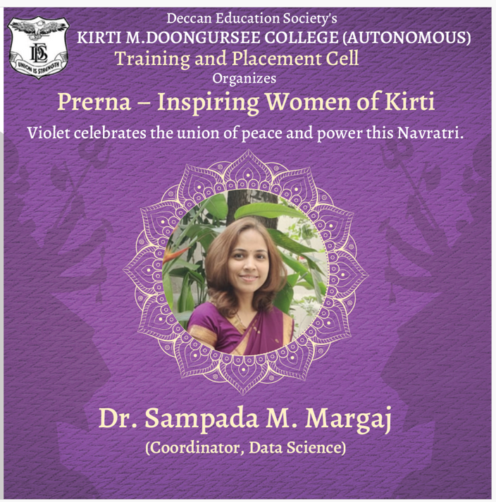 🔗 Visit Dept of BMS WebpagePurple colour indicates Royalty, Luxury, Wisdom, Spirituality, Creativity, Mystery, Ambition and Power … today’s Diva Dr. Sampada Malhar Margaj is aligned with the same qualities. Dr. Sampada Malhar Margaj holds a Ph.D. in Computer Science with expertise in Machine Learning and Data Science. She has 21 years of rich experience in the field of education, including 19 years as an Assistant Professor at Kirti College. She has been actively involved in academic development at the university level. As a convenor and member, she has contributed to designing undergraduate and postgraduate curriculums in Computer Science and Data Science. She has coordinated and conducted university-level examination processes for Third Year B.Sc. Computer Science students in the role of Chairperson. Dr. Margaj has also served as a member of various Undergraduate and Postgraduate Examination Committees at the university. She has worked as an external evaluator for practicals and project assessments for both UG and PG programs in several colleges. She has held important academic roles such as Board of Studies (BOS) member and Vice-Chancellor’s nominee. She has served as a session chairperson in academic conferences and has been actively involved in organizing and participating in conferences, seminars, and workshops at different levels. She is a recognized Ph.D. guide in Computer Science under the University of Mumbai. Dr. Margaj has published several research papers that help students understand modern and emerging technologies, as well as their relevance to society. Her teaching methodology is known to be unique and regularly updated, enabling students to gain knowledge effectively and develop their technical skills.