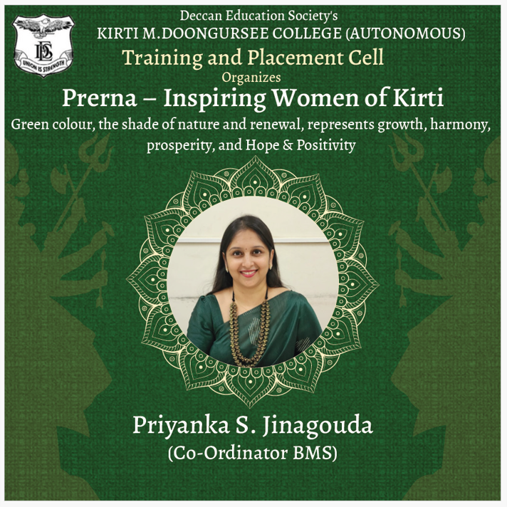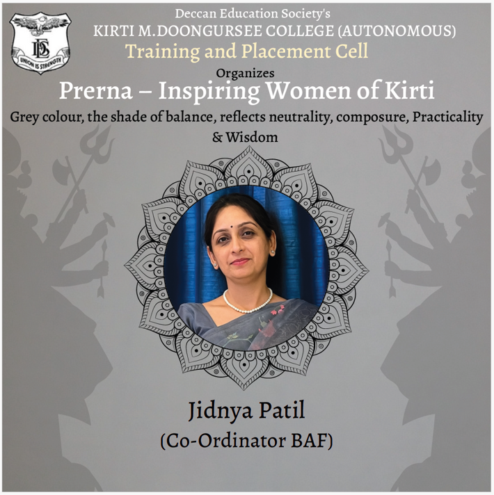 “Only those who handle the pressure well and can command their minds, will make their talent count.” Kirti College was a stepping stone in my success.