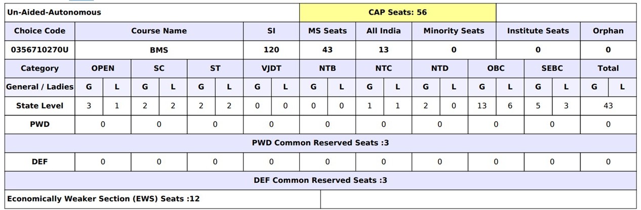 Admission to BMS is conducted through the Maharashtra CET Cell and the Centralized Admission Process (CAP Rounds)