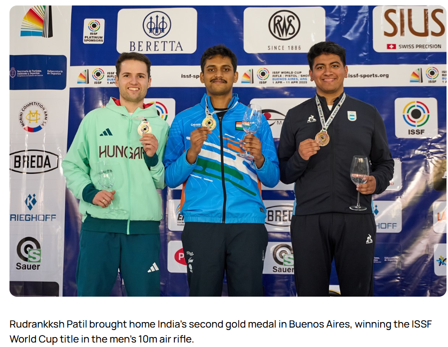 Rudranksh Patil | Rifle Shooting | Gold – All India Inter-University (50m), Gold – World Cup (Argentina), Silver – World Cup (Argentina & Peru), Silver – National Games, Gold – Selection Trials |